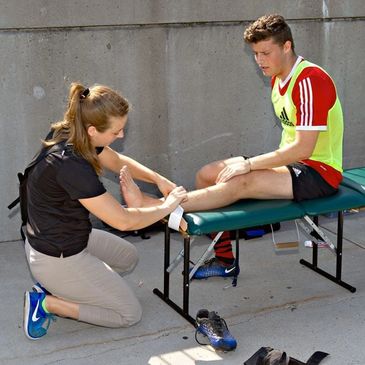 We can apply either athletic tape or K-tape post treatment to help support the injured area. On your way to a game and need to be taped? Book a taping appointment.